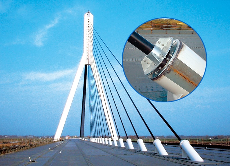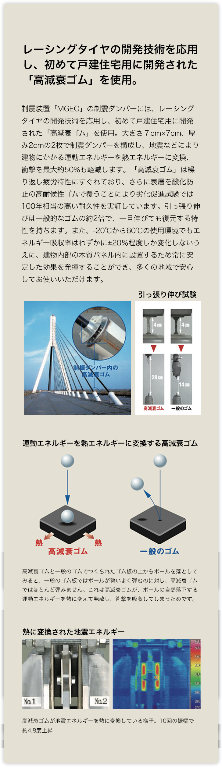 長期の性能安定性を実現しているから、城や寺院といった大切な文化財の価値を先々まで残すことができます。例えば、2016年の熊本地震により大きな被害を受けた熊本城天守閣。2018年に行われた耐震改修工事では、「MGEO」と同様の制震技術を採用した住友ゴム工業(株)の「制震ダンパー」を使用し大天守・小天守の最上階に設置しています。