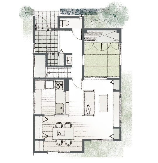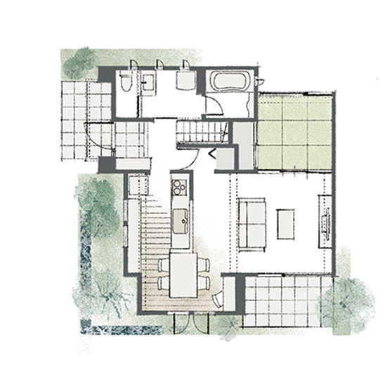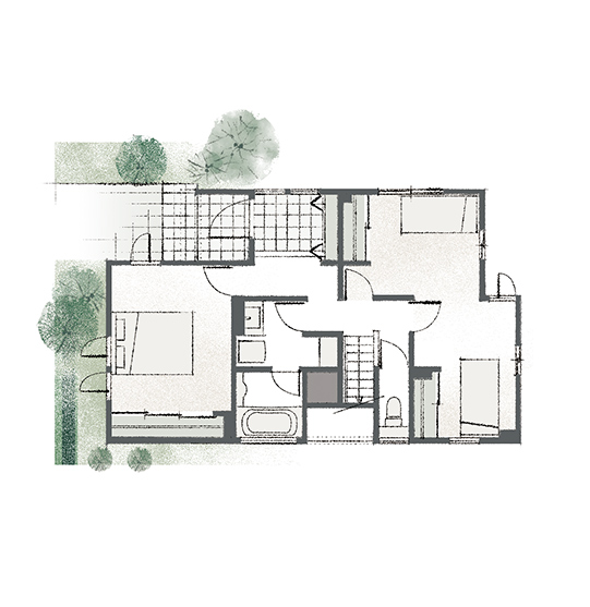 ご家族が上下別々の階にいてもお互いの気配が伝わり、身近に感じることができて安心。