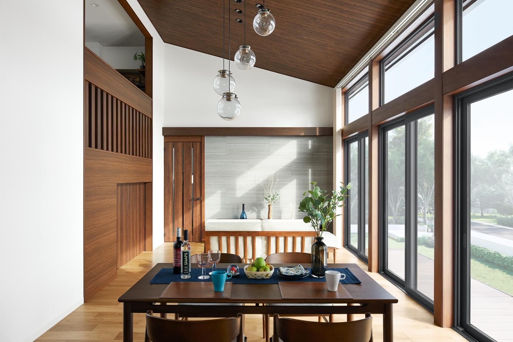 いずれも、高天井&高い窓の広く明るい住まいです。