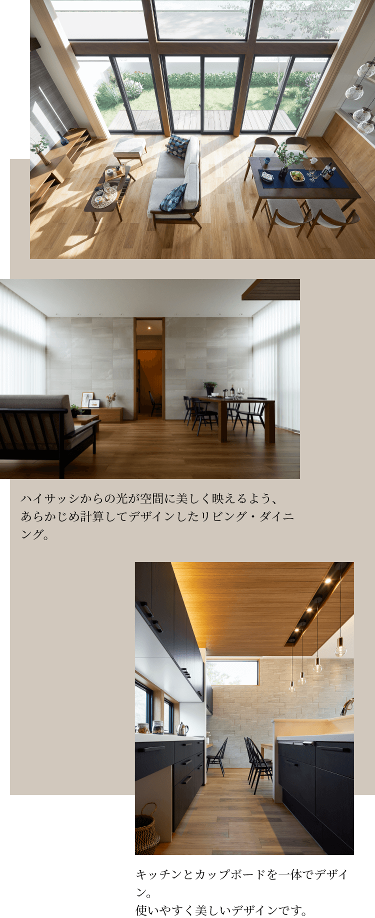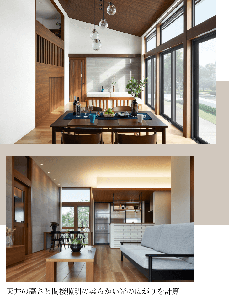 ただ広いだけ、天井が高いだけでは、豊かな空間になりません。 広さと高さ、光と風、明と暗、壁面とディテール、造作と家具など すべてが美しく調和してはじめて、クオリティの高い空間が生まれます。