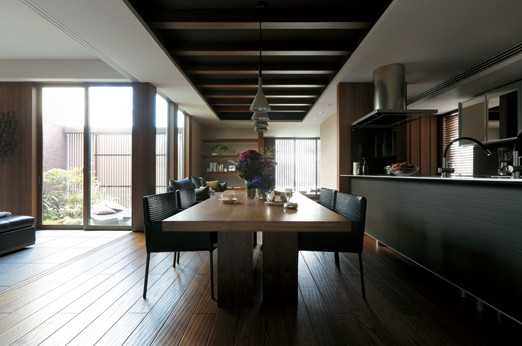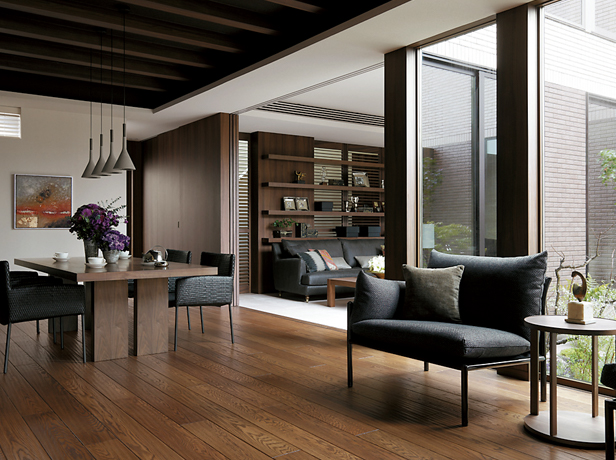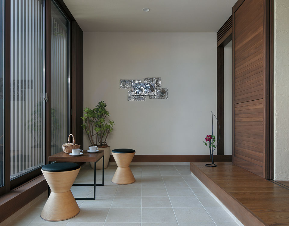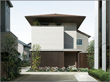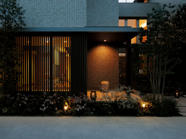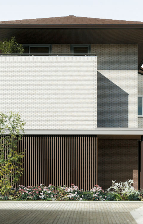 ふたつの美意識を追求した「造り」の住まいです。ひとつは造形の美。シンプルを基本に住まい自体の陰影や奥行感を表現し、深みのある佇まいとします。見上げ視線まで意識した軒天など、ディテールにこだわった上質なデザインです。もうひとつは関係の美。まちとのつながりを深める開かれた設計を追求し、植栽を施してうるおいも提供します。日本のまちなみを高め、日本の四季を愉しむわが家になります。
