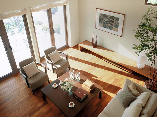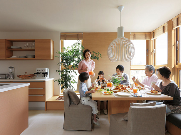 まちの住まいは、プライバシーやセキュリティへの不安から閉鎖的になりがちです。ミサワホームは、1.5階LDKや2.5階バルコニーなどで外からの視線に配慮したうえで、家の外と内のほどよいつながりを実現します。まちなかでも採光や通風を確保する設計、まちなみに開かれたファザードをデザイン。スマートハウス化への対応により、二世帯みんながエネルギー面でも安心。快適な暮らしを満喫できます。
