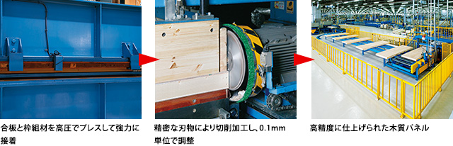 合板と枠組材を高圧でプレスして強力に接着