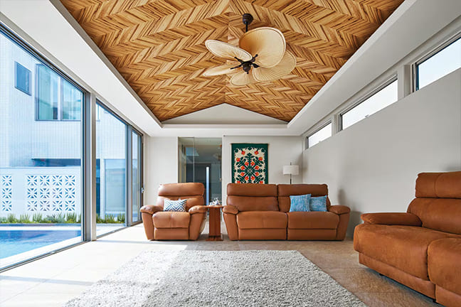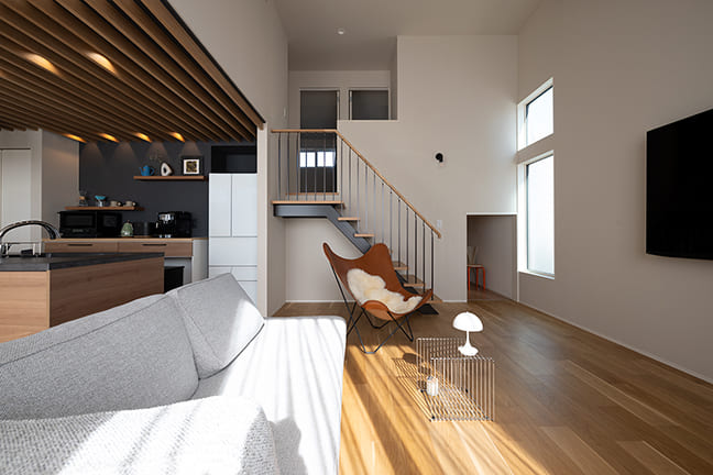 高天井のLDKでテラスを囲み