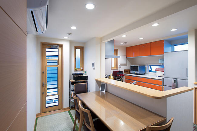 Oさま邸の二世帯住宅は、親世帯と子世帯の住居が「ほどほどに独立」しているタイプ。キッチンやリビング、水回りなどは完全に独立しているが、玄関を共有することでお互いの気配を感じることができている。