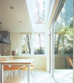 まるで森の中の別荘のような、ゆったりとした雰囲気。しかし、住まいがあるのは札幌の中心にほど近い住宅密集地で、工場の倉庫に隣接した敷地です。 この立地条件にも関わらず、Aさまがここに新居を構えられたのは、「土地のハンデを見事にプラスに転じるプラン提案があったから」といいます。 ミサワホームがご提案したのは、隣家との境界にある屋敷林を借景として最大限に活用した住まいづくり。その結果、シンプルでコンパクトな建物に、驚くほど開放感のあるライフステージが生まれました。