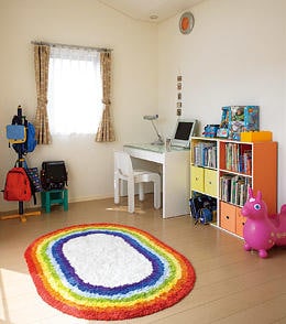 やさしい色調でまとめた子ども室。勾配天井が広がりを感じさせます。