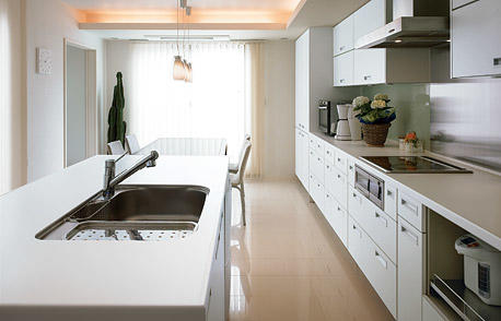 ゆとりあるスペースを確保し、アイランド型としたキッチン。機能美があふれます。