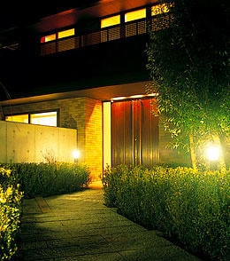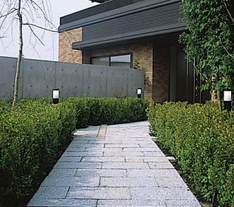 住まいへのアプローチが、ひそかな散策道になったかのような、遊び心あふれる空間デザインです。歩きながら横目で眺めるしだれ桜にドウダンツツジ。うっすらと照らし出された御影石の石畳。玄関に辿り着くころには、訪れた人はすっかりくつろいだ気分になることでしょう。 「都会の喧騒を感じさせない、凛とした静けさを」というSさまのご要望を受け、「これからの和風」の提案を込めた邸宅。和洋折衷の趣のあるデザインが、その豊かな質感、静けさ、そしてやさしさを感じる佇まいに息づいています。