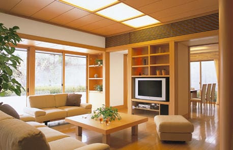 室内はSさまの空間へのこだわりにお応えし、まさに真のゆとりを実現しています。明るく広びろとしたリビングは進化した木素材「M-Wood」の温かみのある雰囲気で包まれ、南向きの大開口からは美しく手入れの行き届いた庭園を心ゆくまで眺めることができます。また、どんな小物もおろそかにせず、空間のディテールにいたるまでトータルな設計思想を貫き、心地よさをデザインしています。