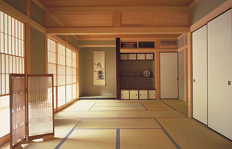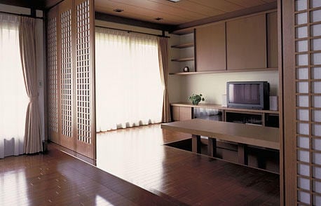 床の間や違い棚、欄間など、伝統的な和の意匠が息づく二間続きの和室。