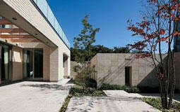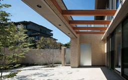 高い塀の内側に開かれた景色を創り出し、中層マンションも多く建つ街中でありながら、静寂で開放感に満ちた暮らしを満喫されています。