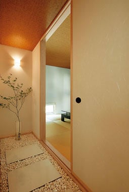 一方、和室は趣向を凝らし、玉砂利の前室を設けて旅館のようなしつらえに。バスコートを設けたリゾートスパさながらの浴室もご夫妻のお気に入り。雑木林の息吹を感じながら露天感覚で入浴できます。