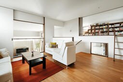 「蔵」を活用したスキップフロアの設計で立体空間を縦に横に上手に活用し、お互いのプライバシーを守りつつ、3世代の家族がいつも温かくふれあえる心地よい暮らしを楽しまれている。