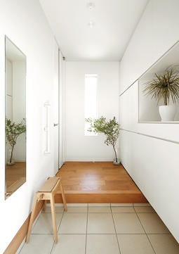 Tさま邸は白いタイル張りに黒目地を効かせた外壁が瀟洒な平屋のお住まい。「マンション生活でワンフロアの暮らしに慣れていましたし、いずれ子どもたちは巣立っていくので大きな家はいらないと思い、平屋にしました」とTさま。