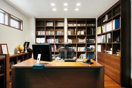 ご夫妻にとって求める住まいとは、「ホームパーティができる広いリビング」。そして、ご主人には「書斎とビルトインカーポートのある家」でした。そんなTさま邸は延床面積77坪以上で、展示場の住宅を思わせる規模。「何かの要望を叶えるためにどこかを我慢する。それがないのがうれしい」と語るご主人。