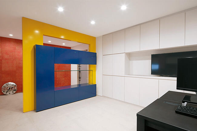 併設のオフィスは、さらに3色を大胆に生かして楽しい雰囲気に。