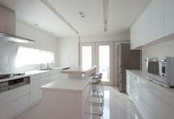 もともと住まいには、モノの少ないすっきりとした空間を望んでいた奥さま。広いキッチンには十分な収納もあり、作業中でも扉を閉めてしまえば、ダイニングやリビングから中が見えることはありません。
