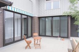 また、中庭につくられた広いタイルテラスは、お子さまの格好の遊び場。夏場にはプールを置いて水遊びをしたり、友達を招いてバーベキューをしたり、アウトドアリビングとしても大活躍です。