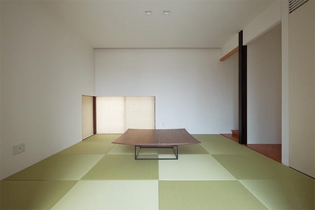 子世帯と親世帯をつなぐ廊下に設けられたモダンな和室は、両世帯の共有スペース。クリスマスや忘年会、お正月、お誕生日など特別な行事の際にはこの和室に全員が集まって、庭の眺めを楽しみながら会食されるそう。3世代6人家族の幸せそうな団らんの様子が目に浮かぶようです。