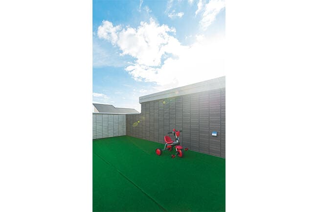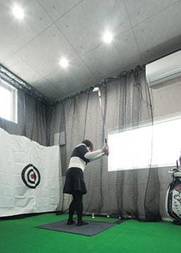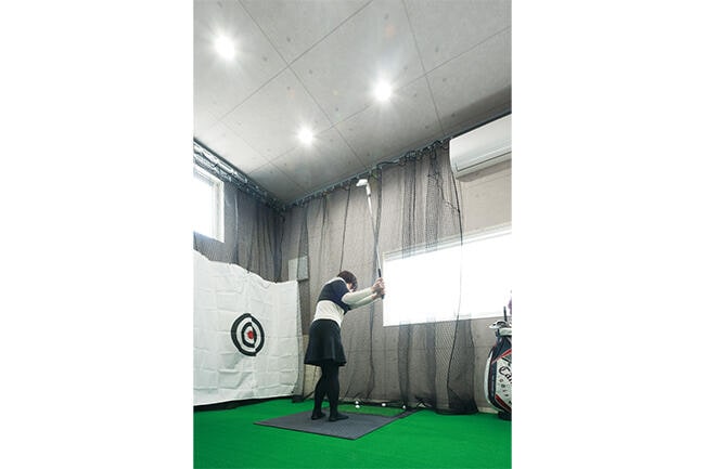 ゴルフのスイング練習ができるように天井も高くなっています。ゴルファーとしてアマチュア大会で活躍する奥さまは、「子育てや家事の合間に練習できるのでうれしいですね」とにっこり。