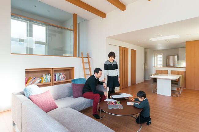 「大人も子どもも楽しく伸びやかに暮らせる家にしたい」という願いを叶えられたNさまご夫妻。「友人たちをたくさん呼んでホームパーティーを開きたいですね」と満面の笑顔で語ってくれました。
