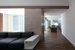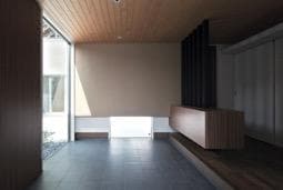 シルバーのアルミ格子を大胆に活かした外観が、ひときわ洗練された印象を放つIさま邸。 屋内に入るとタイル敷きの中庭を囲んでメイン玄関、リビング、ダイニングキッチン、ファミリー玄関が回廊動線でつながり、思いがけないほど潤い豊かな景色が広がっていました。 高い塀で囲んでプライバシーをしっかりと守りつつ、中庭から心地よい光と風、緑の眺めを家中に採り入れたコートハウスの設計です。