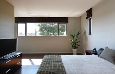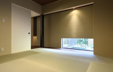 心から自然とふれあえる工夫が盛り込まれたAさま邸。たとえば、和室には坪庭の眺めを楽しむ地窓を設け、シンプルな和室に景色を与えています。また、天井には代萩(だいはぎ)の自然素材を用いて涼やかな印象を演出しました。さらに、ステージのようなウッドデッキはお子さまたちの一番の遊び場。庭の自然を感じながらご家族でのびやかな時間が過ごせそうです。