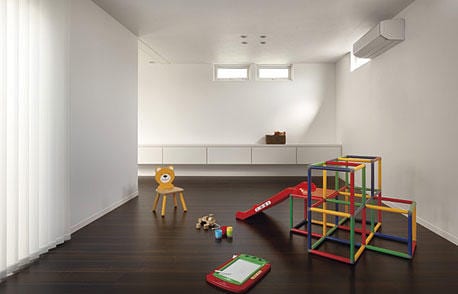 Kさま邸は、落ち着いた街並みの一角に建つ平屋の住まい。水平ラインを強調したフラットな外観は、シャープで安定感のある佇まいを見せています。 住まいづくりにあたってKさまご夫婦がとくに重視されたのは、子どもとのコミュニケーションがとりやすいオープンな間取りであること、周囲の視線を気にすることなく家族でくつろげること、そして防犯もしっかり考えられていることの3つでした。 その答えが「外側は閉じ、中庭に向かって開かれた家」という発想。中庭を中心とした"サーキュレーションプラン"が、この上ない安心とくつろぎを実現しました。