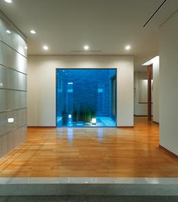 視線が中庭まで抜け、開放的な雰囲気でお客さまをお迎えする玄関ホール。