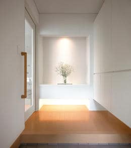 壁や収納扉をホワイトで統一した玄関ホール。フローリングがぬくもりを演出しています。