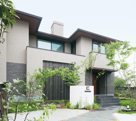 [千葉県 Wさま邸] シンプルモダンながら、どこか和の趣が漂う外観。街並みにもし...