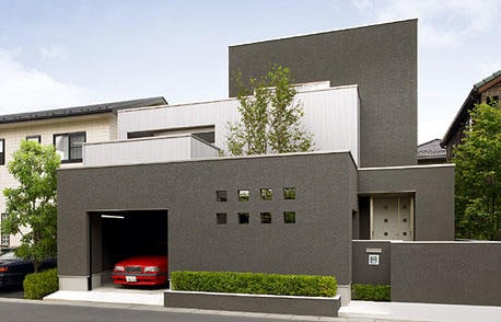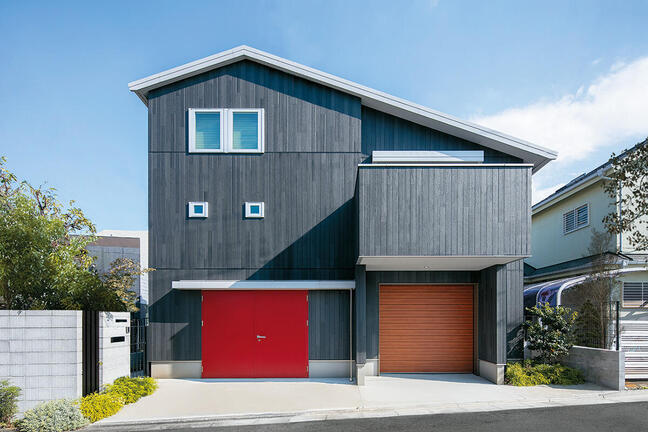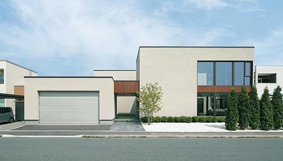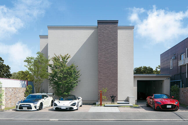 [福岡県 Hさま邸] 正面中央にビルトインされたガレージ。ここから独特のエンジン...