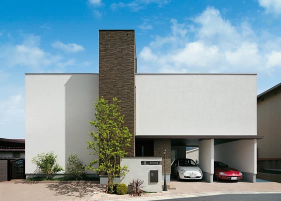 [和歌山県 Sさま邸] 白いボックスを組み合わせたような幾何学的な外観デザインが...