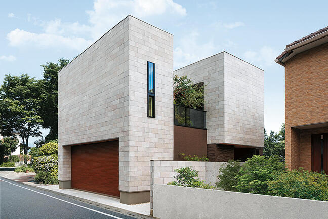 [東京都 Kさま邸] 白い石張りのスクエアな外観が印象的なKさま邸。車の往来の多...