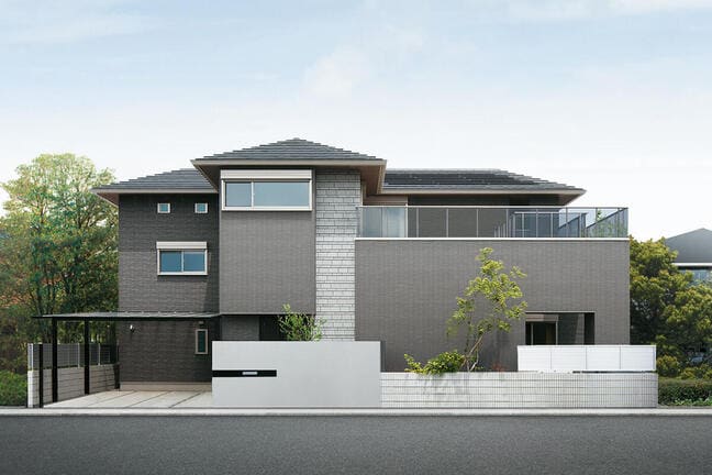 [埼玉県 Wさま邸] ダークカラーとステンカラーでモノトーンにまとめられた外観。...