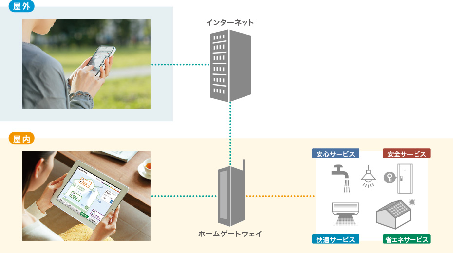 外出先からエアコンをつけたり、自動的に室内環境を整えることができ、いつでも心地よい空間で暮らせます。