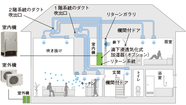 家中がまるで一つの部屋のように、どこでも快適な温度になります。