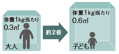 子どもは体重1kg当たり、大人の約2倍もの空気を摂取しています。とくに家の中にいる時間の永い乳幼児期には影響を受けやすいため、健康的な空気環境をつくることは、とても重要です。