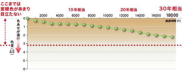 ※上記はプラチナコートの代表例をグラフにしたものです。(他社試験)商品の濃淡によって色差の値が変わります。