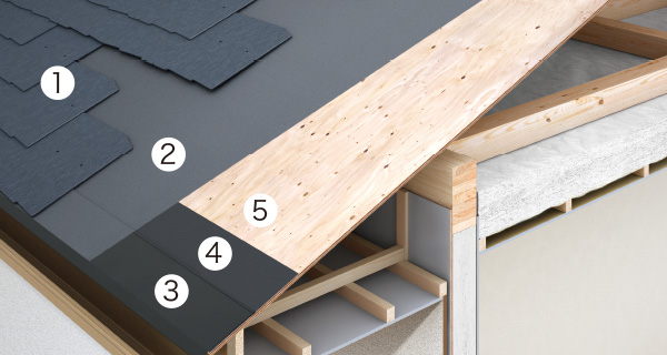 屋根は、屋根材の下に防水性能の高いルーフィングを施工。